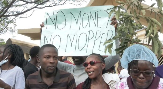 Vasual Workers protesting at the Bungoma county Government offices…Photo by Tim Wekesa.