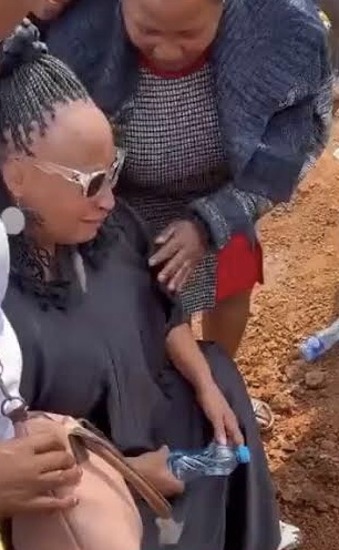 Mother of Gen Z youth who died in the Githurai protests comforted by a friend at the burial ceremony of her son.
