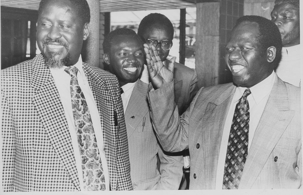 The late VP Wamalwa Kijana (Ford Kenya chairman then)and Raila Odinga (the Ford Kenya deputy director of elections in the early 90s )